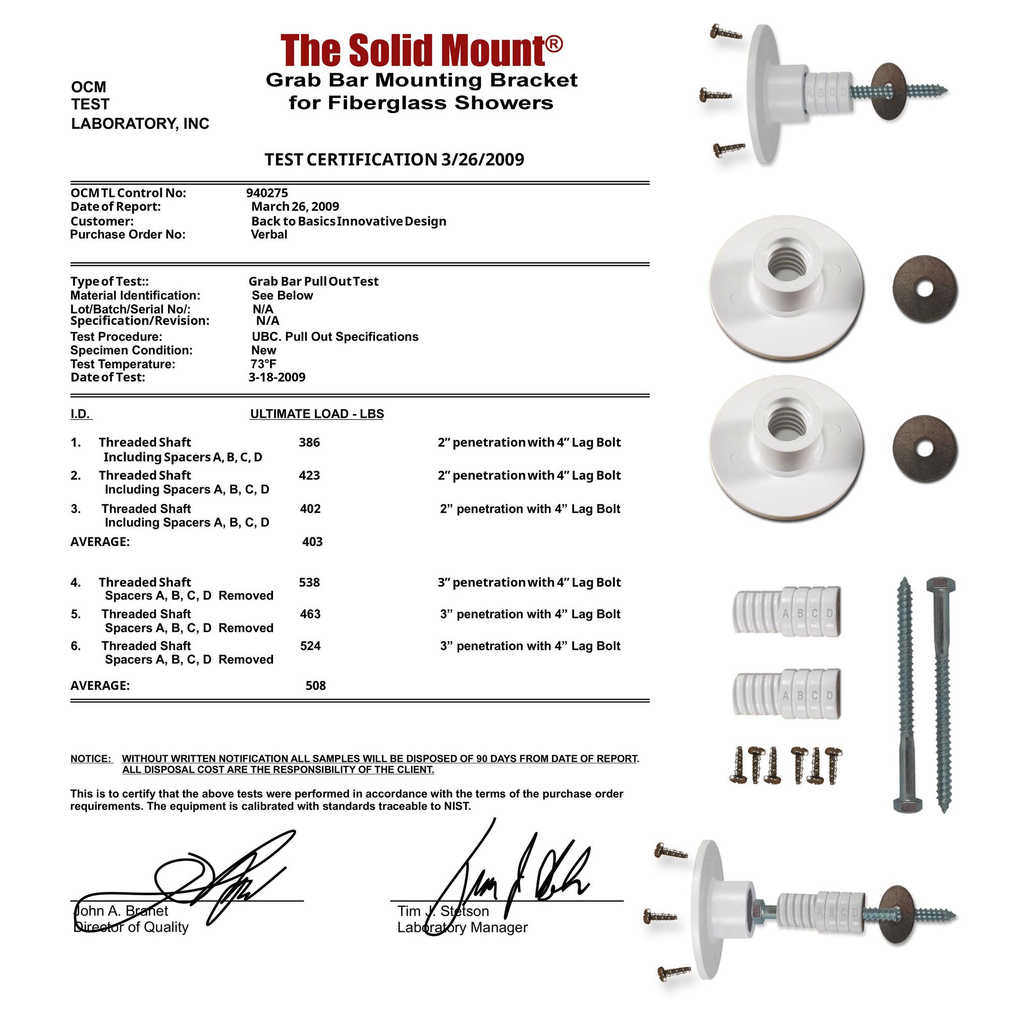 The Solid Mount® is an exceptional product that is carefully crafted to meet the highest standards in the market. The Solid Mount® has surpassed both the US (250 lbs.) and Canadian (300 Lbs) Codes; (click on the Image and/or the links below), which is a clear indication of its remarkable quality and reliability. Through rigorous testing, we can confidently affirm that the Solid Mount® is the perfect option for those seeking a product that is specifically engineered for fiberglass showers. Choosing the Solid Mount® means that you are choosing the best, and you can trust that it will provide you with long-lasting and excellent service. The engineers behind the Solid Mount® have a deep understanding of the unique needs of your shower, and they have put in the time and effort to ensure that this product offers unparalleled strength, stability, and safety. Get yourself the Solid Mount® today and experience the difference!